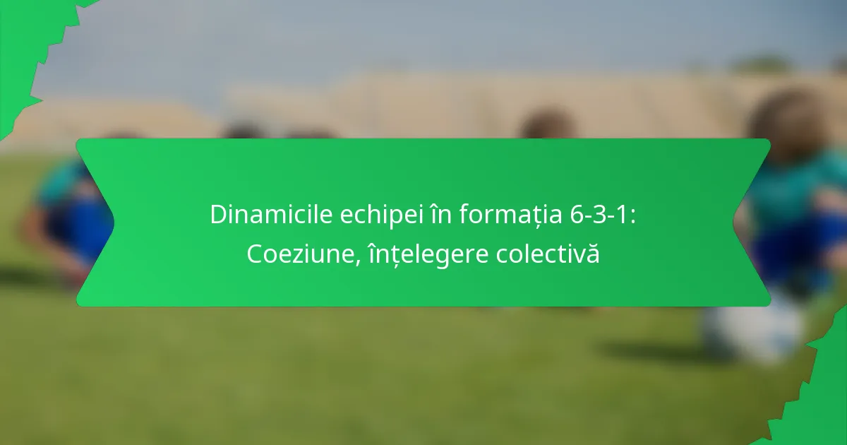 Formația 6-3-1 este o configurație tactică care prioritizează forța defensivă, permițând în același timp oportunități ofensive strategice. Succesul în această formație depinde de coeziunea echipei și de înțelegerea colectivă, deoarece jucătorii trebuie să colaboreze strâns pentru a-și îndeplini rolurile eficient. Prin cultivarea încrederii și comunicării, echipele pot îmbunătăți dinamica lor, conducând la o performanță mai bună pe teren.
